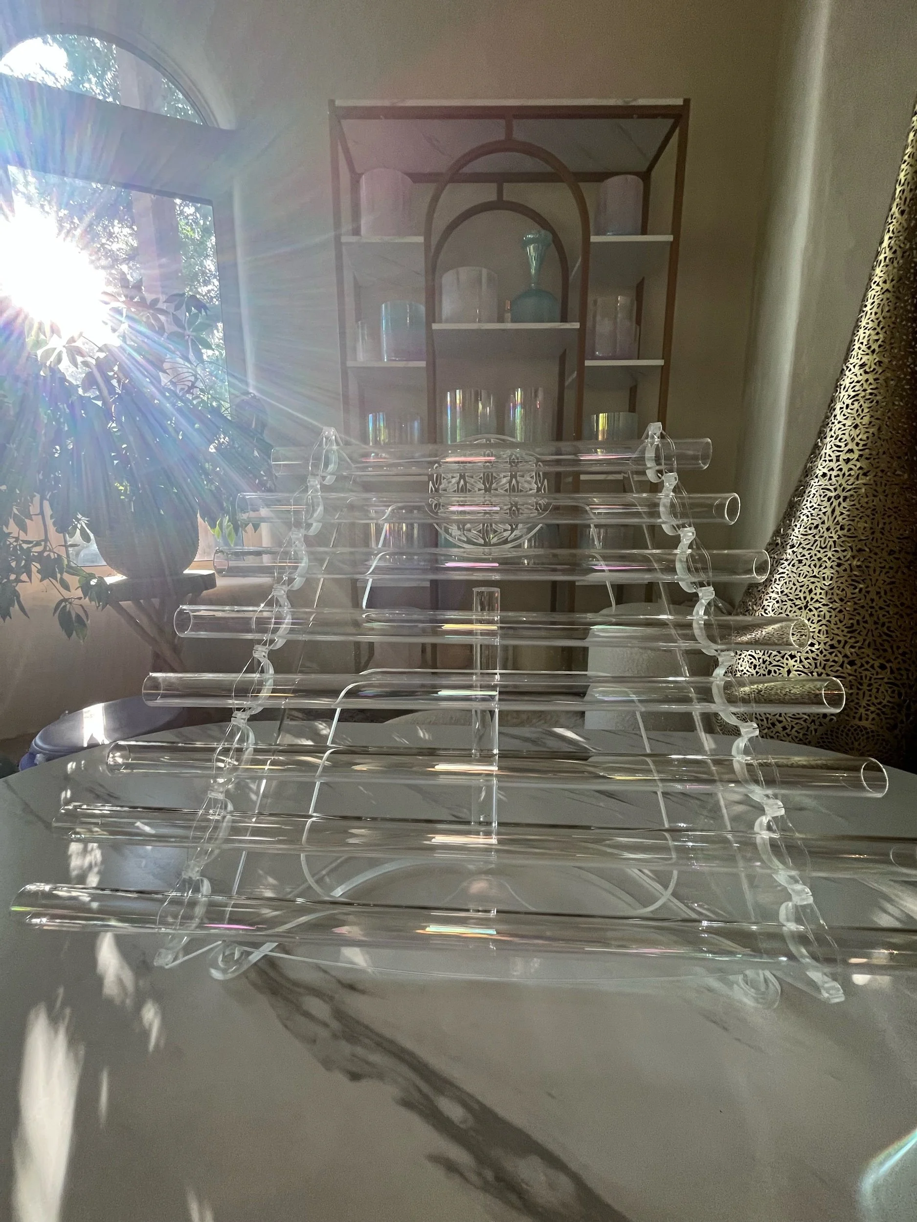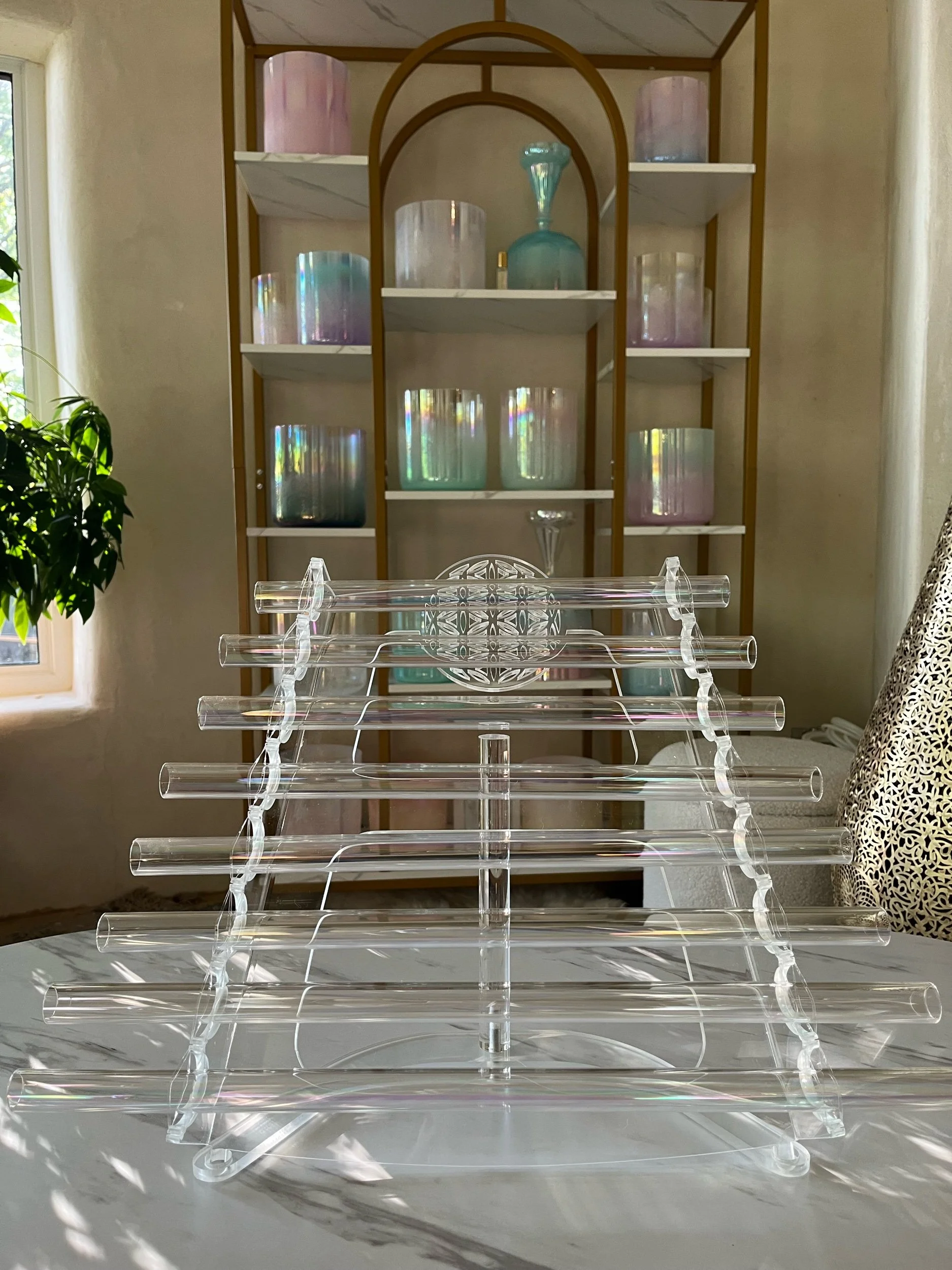 This harp brings movement and light into every space. When sunlight touches the tubes, rainbows appear through the Titanium infusion. When played near water or in open air, the sound becomes multidimensional and deeply immersive. Perfect for sound baths, yoga gatherings, personal ritual, and studio recording.